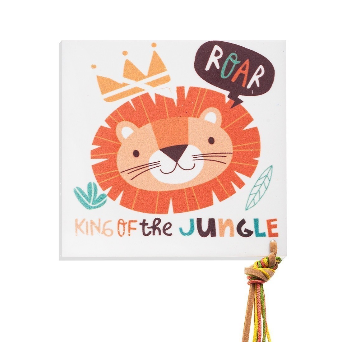 Σουβέρ σε τετράγωνο σχήμα με print plexiglass παράσταση σε λευκό χρώμα. Η παράσταση απεικονίζει το λιονταράκι ως "King of the jungle".