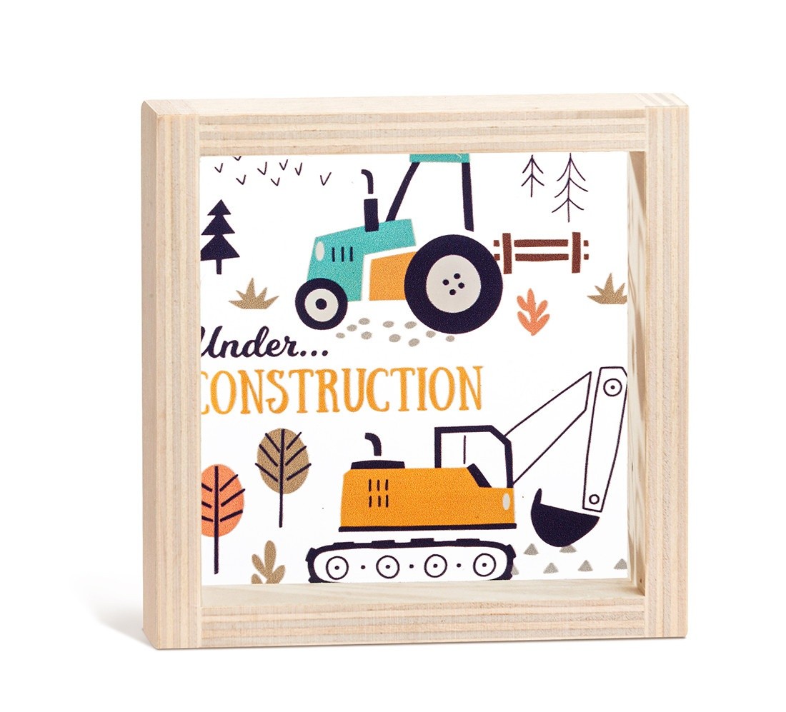 Ξύλινο καδράκι με print plexiglass παράσταση.Η παράσταση απεικονίζει σε διάφανο χρώμα τον εκσκαφέα και το τρακτέρ.