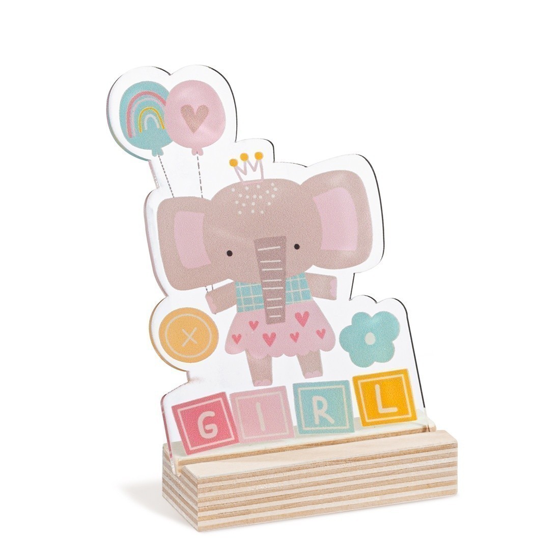 Ξύλινη βάση με print plexiglass κοπτικό. Η παράσταση απεικονίζει σε διάφανο χρώμα την ελεφαντίνα σε ροζ αποχρώσεις.