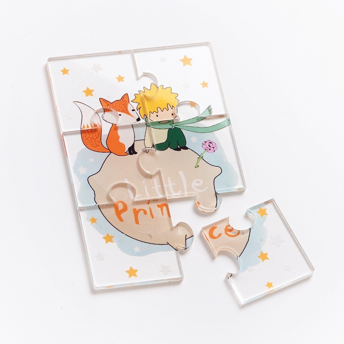 Puzzle 6 τεμαχίων με print παράσταση σε plexiglass διάφανο.Η παράσταση απεικονίζει την κλασσική φιγούρα του Μικρού Πρίγκιππα από το παραμύθι .Στην τιμή περιλαμβάνεται το κουτάκι δώρου που είναι τοποθετημένο το puzzle.