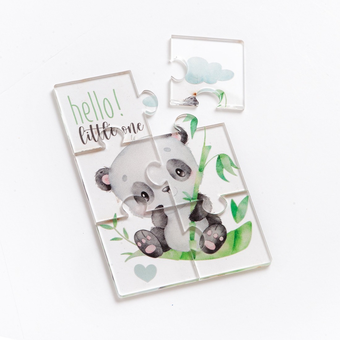 Puzzle 6 τεμαχίων με print παράσταση σε plexiglass διάφανο.Η παράσταση απεικονίζει την κλασσική φιγούρα του panda με τον ευκάλυπτο .Στην τιμή περιλαμβάνεται το κουτάκι δώρου που είναι τοποθετημένο το puzzle.