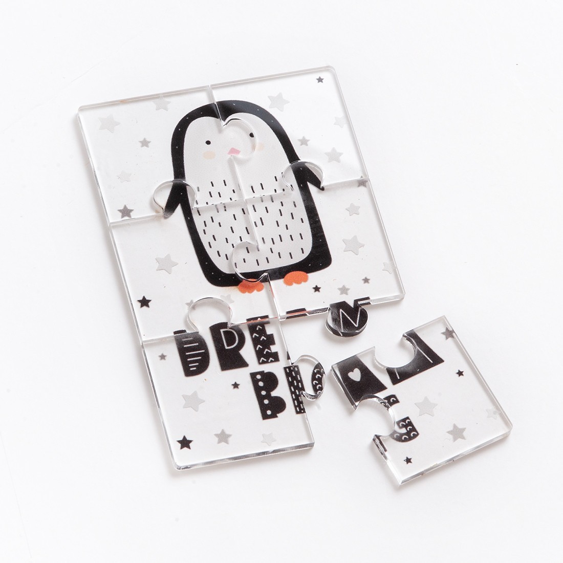 Puzzle 6 τεμαχίων με print παράσταση σε plexiglass διάφανο.Η παράσταση απεικονίζει τον πιγκουίνο και moto "DREAM BIG".Στην τιμή περιλαμβάνεται το κουτάκι δώρου που είναι τοποθετημένο το puzzle.