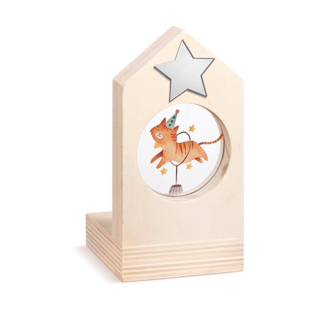 Ξύλινο διακοσμητικό σπιτάκι με ρεσώ.Το σπιτάκι είναι διακοσμημένο με στρογγυλό print plexiglass σε διάφανο χρώμα.Η παράσταση απεικονίζει την τίγρη στο τσίρκο.