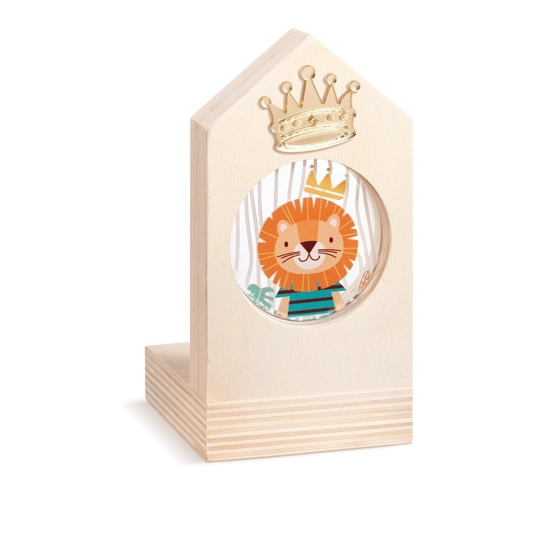 Ξύλινο διακοσμητικό σπιτάκι με ρεσώ.Το σπιτάκι είναι διακοσμημένο με στρογγυλό print plexiglass σε διάφανο χρώμα.Η παράσταση απεικονίζει το λιονταράκι ως king of the jungle.