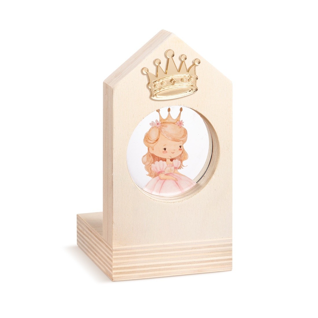 Ξύλινο διακοσμητικό σπιτάκι με ρεσώ.Το σπιτάκι είναι διακοσμημένο με στρογγυλό print plexiglass σε διάφανο χρώμα.Η παράσταση απεικονίζει την πριγκίπισα του παραμυθιού.