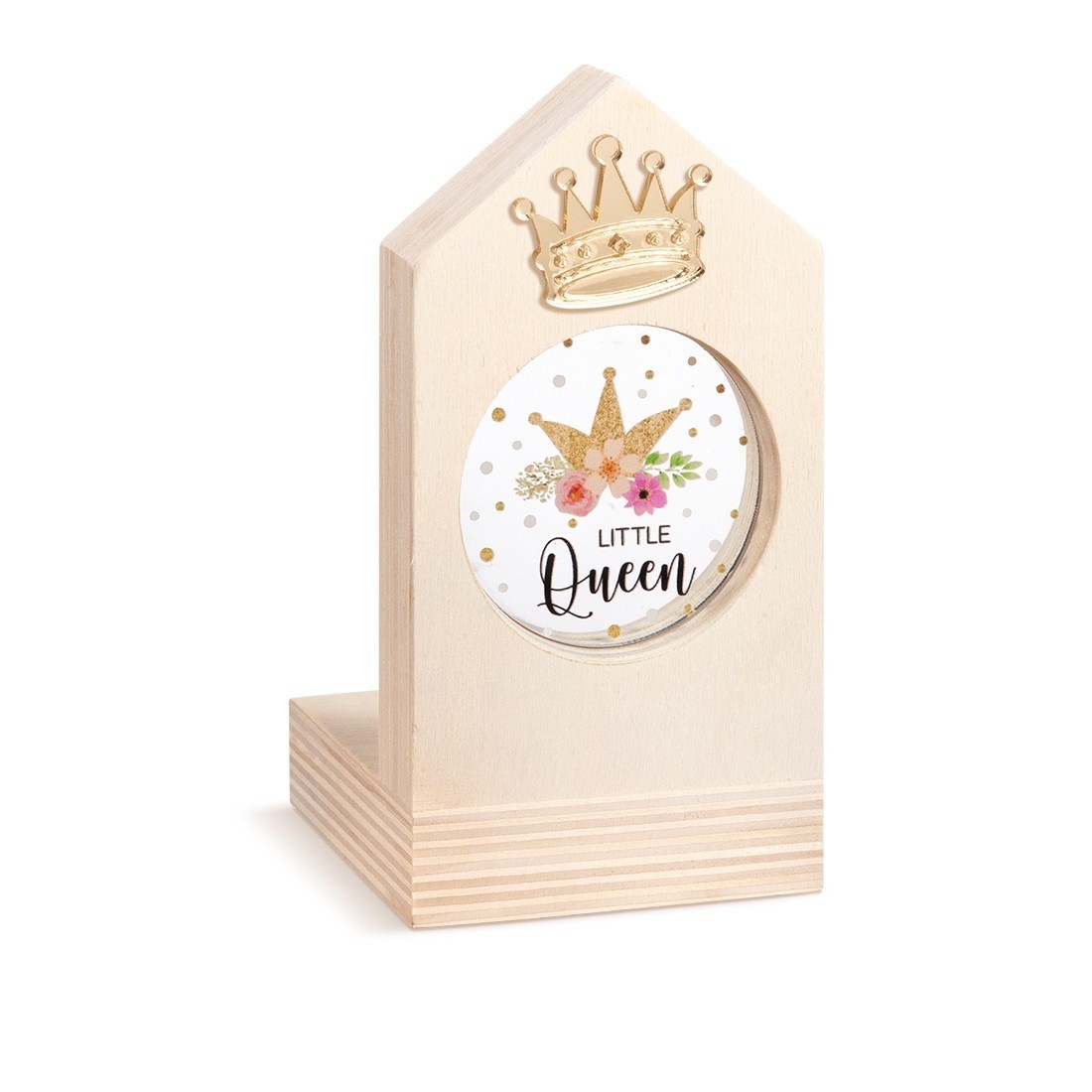 Ξύλινο διακοσμητικό σπιτάκι με ρεσώ.Το σπιτάκι είναι διακοσμημένο με στρογγυλό print plexiglass σε διάφανο χρώμα.Η παράσταση απεικονίζει την κορώνα της Little Queen.