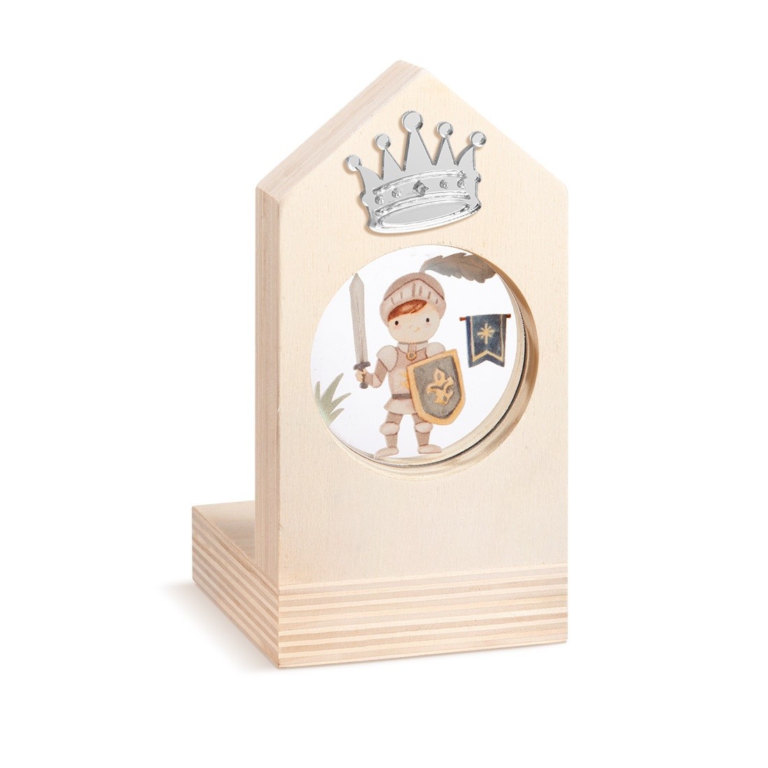 Ξύλινο διακοσμητικό σπιτάκι με ρεσώ.Το σπιτάκι είναι διακοσμημένο με στρογγυλό print plexiglass σε διάφανο χρώμα.Η παράσταση απεικονίζει τον ιππότη του παραμυθιού.