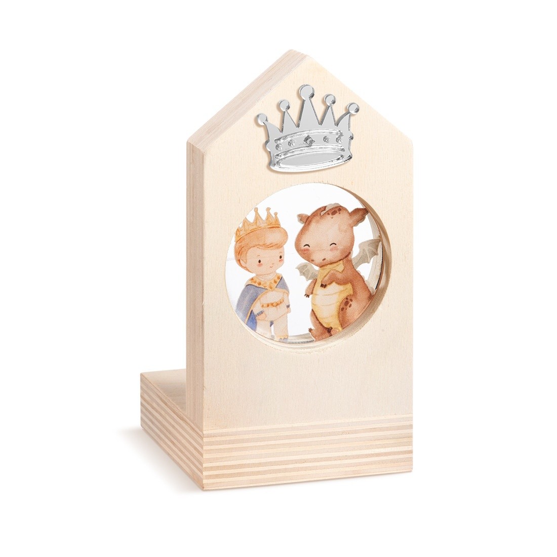 Ξύλινο διακοσμητικό σπιτάκι με ρεσώ.Το σπιτάκι είναι διακοσμημένο με στρογγυλό print plexiglass σε διάφανο χρώμα.Η παράσταση απεικονίζει τον πρίγκιπα παρέα με τον δράκο του παραμυθιού.