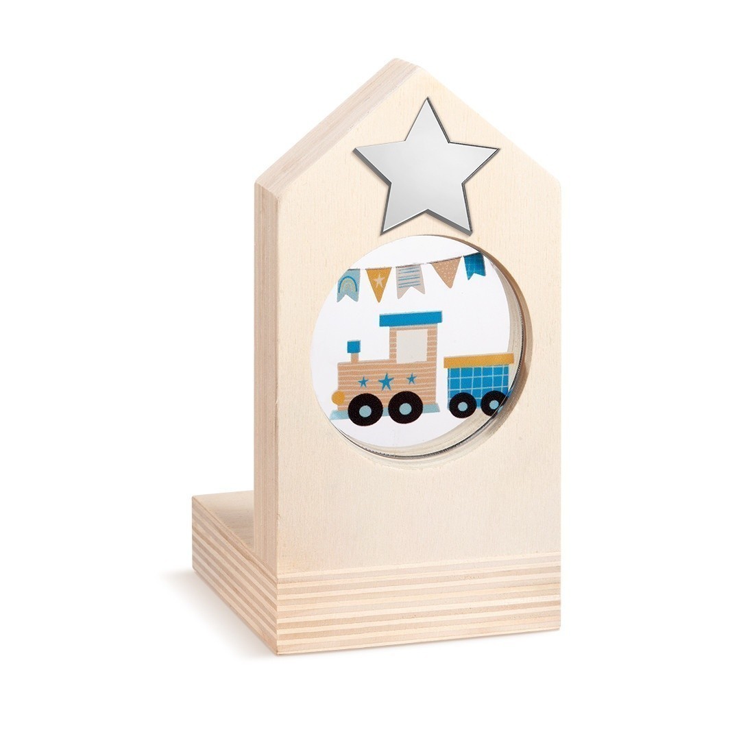 Ξύλινο διακοσμητικό σπιτάκι με ρεσώ.Το σπιτάκι είναι διακοσμημένο με στρογγυλό print plexiglass σε διάφανο χρώμα.Η παράσταση απεικονίζει το τρε΄νακι σε σιελ αποχρώσεις.