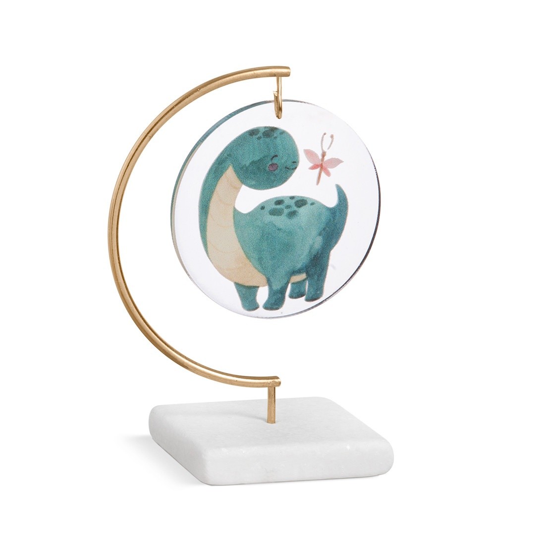 Διακοσμητική μπομπονιέρα με σύνθεση τριών υλικών.Η σύνθεση αποτελείται από : α) στρογγυλή print plexiglass παράσταση σε διάφανο χρώμα β) μεταλλικό κρίκο σε χρυσό χρώμα γ)βάση. Η παράσταση απεικονίζει ένα κυπαρισσί δεινόσαυρο .