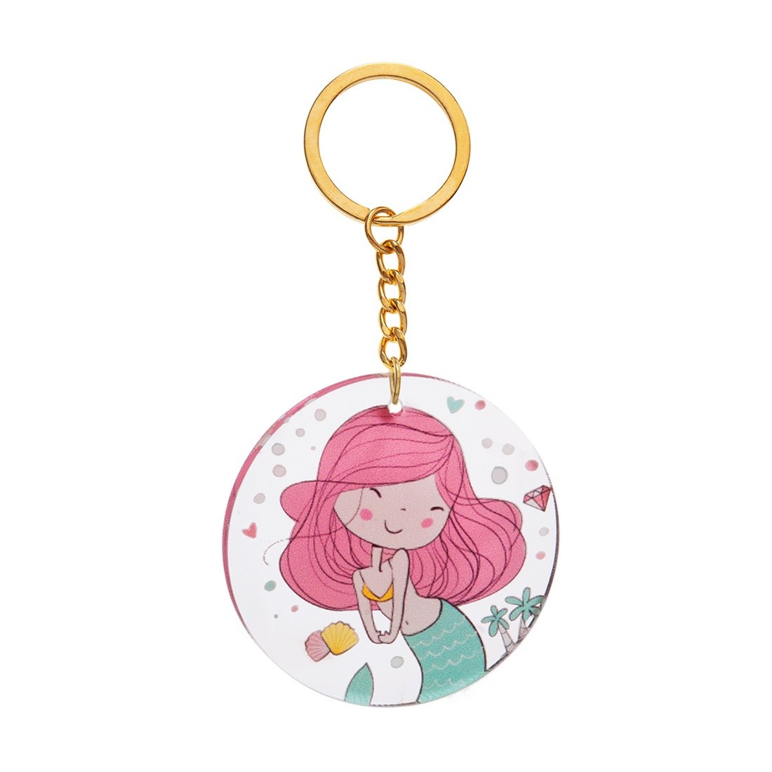 Μπρελόκ με στρογγυλή print παράσταση από plexiglass σε διάφανο χρώμα. Η παράσταση απεικονίζει τη γοργόνα.