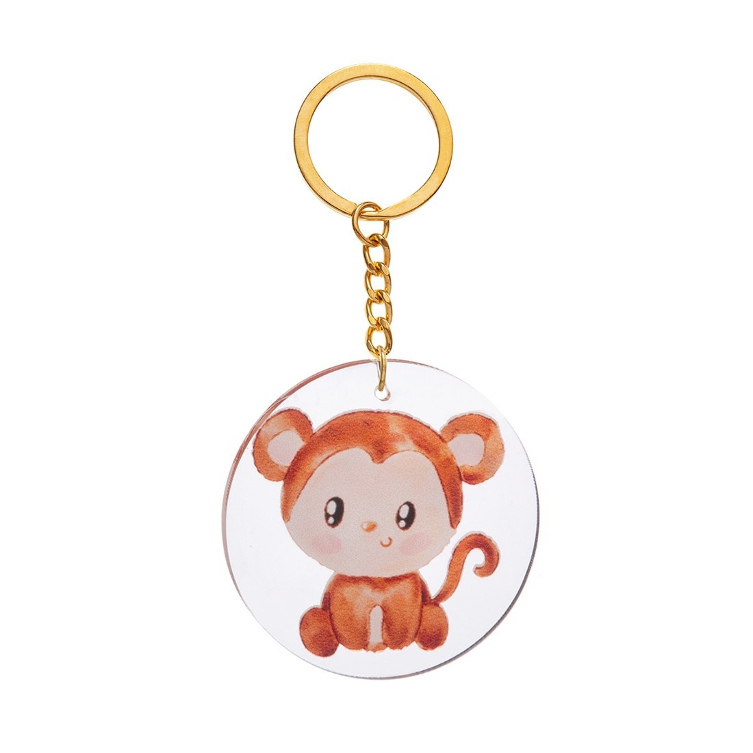 Μπρελόκ με στρογγυλή print παράσταση από plexiglass σε διάφανο χρώμα. Η παράσταση απεικονίζει ένα baby μαμουδάκι.