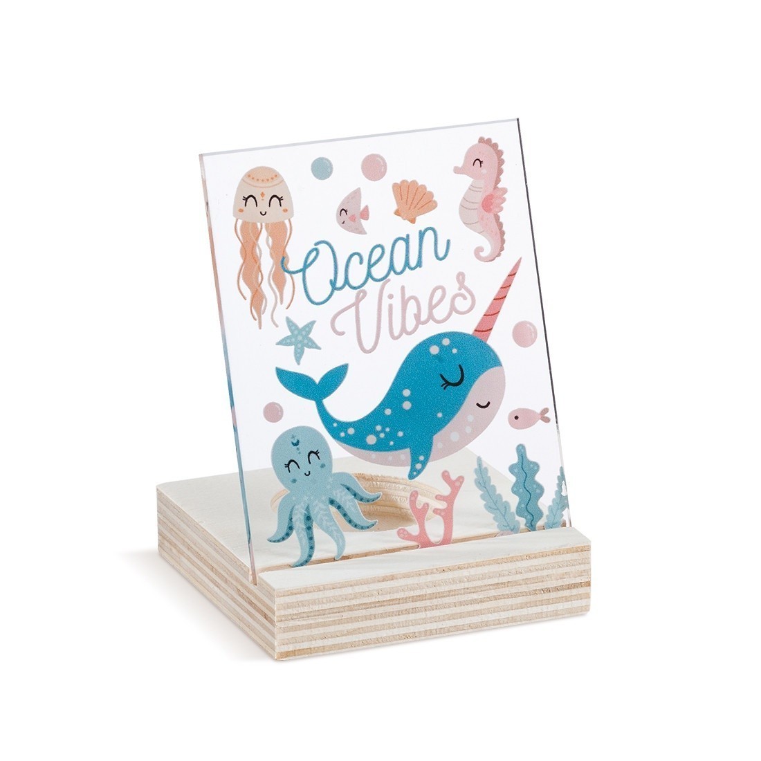 Ξύλινο ρεσό με παραλληλόγραμμο print καδράκι σε διάφανο plexiglass. Η παράσταση απεικονίζει το βυθό με τη φάλαινα, τη μέδουσα, το χταπόδι και τον ιππόκαμπο σε "Ocean Vibes".