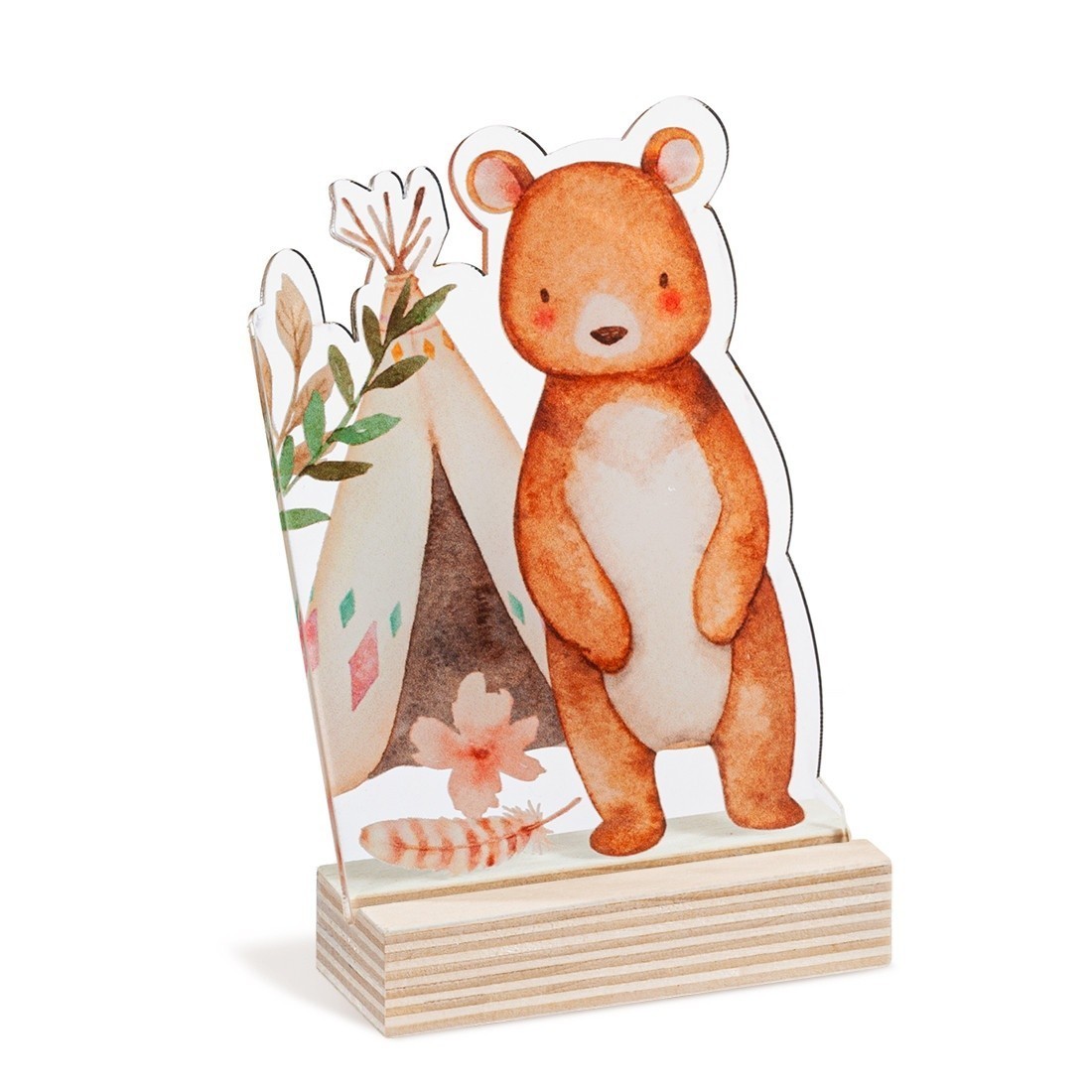 Ξύλινη βάση με print plexiglass κοπτικό. Η παράσταση απεικονίζει σε διάφανο χρώμα την αρκουδίτσα σε boho style.