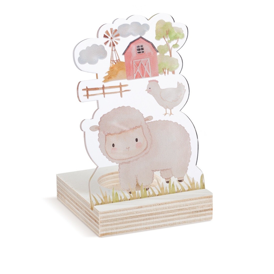 Ξύλινη βάση ρεσώ με print plexiglass κοπτικό. Η παράσταση απεικονίζει σε διάφανο χρώμα τα ζωάκια της φάρμας .