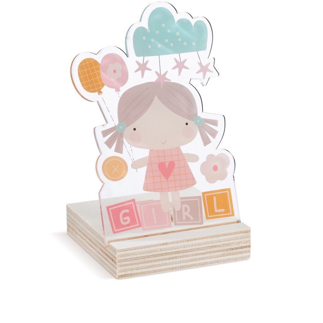 Ξύλινη βάση ρεσώ με print plexiglass κοπτικό. Η παράσταση απεικονίζει σε διάφανο χρώμα ένα κοριτσάκι σε ροζ girlish αποχρώσεις .