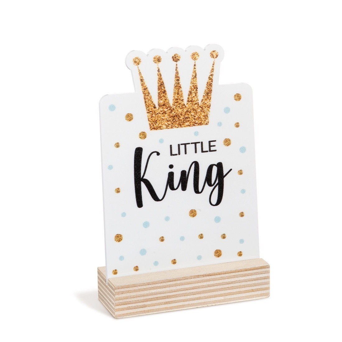 Ξύλινη βάση με print plexiglass κοπτικό. Η παράσταση απεικονίζει σε λευκό χρώμα την κορώνα του "Little King" .