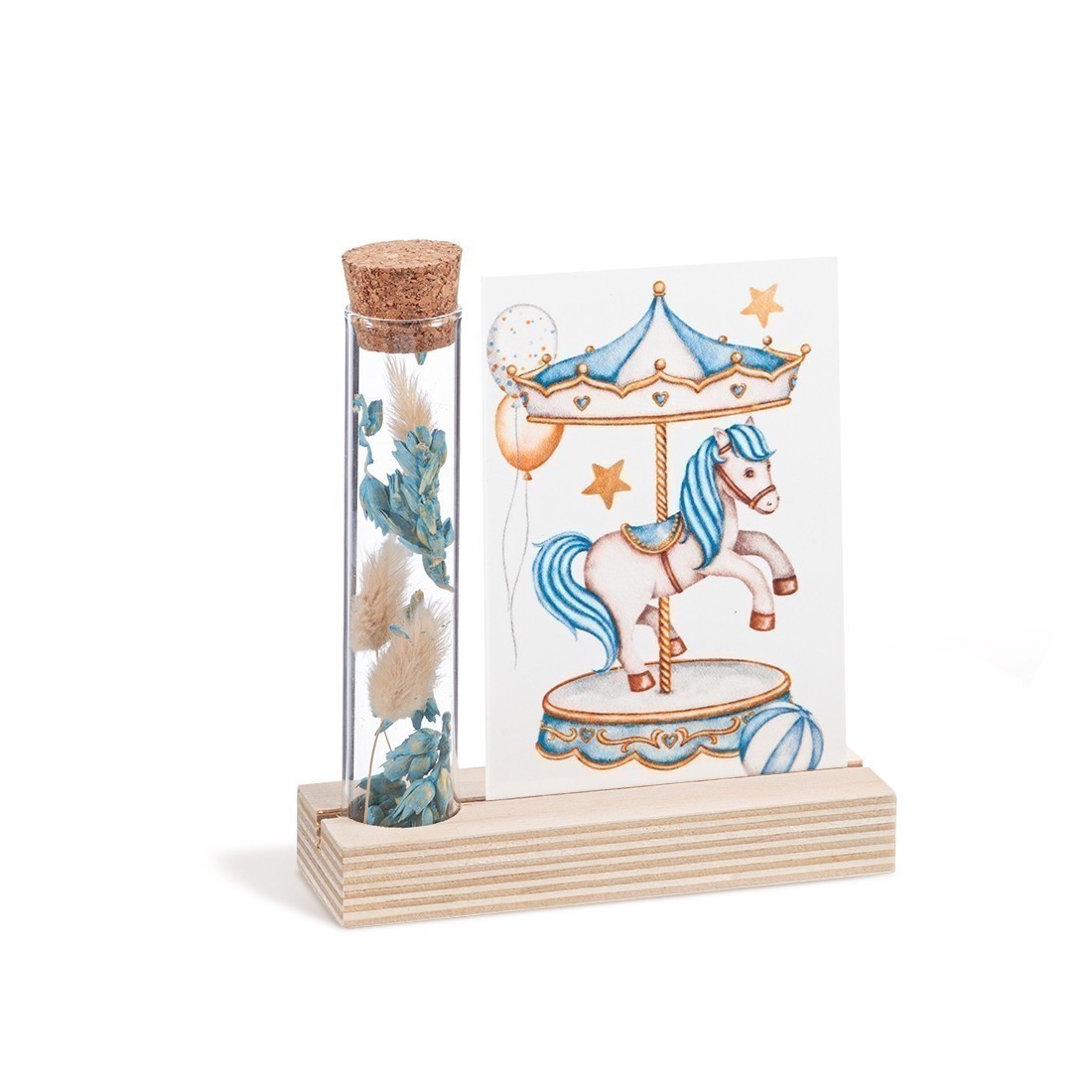 Ξύλινη βάση με print καδράκι plexiglass σε λευκό χρώμα και γυάλινο δοκιμαστικό σωλήνα.Η παράσταση απεικονίζει το σιέλ καρουζέλ.