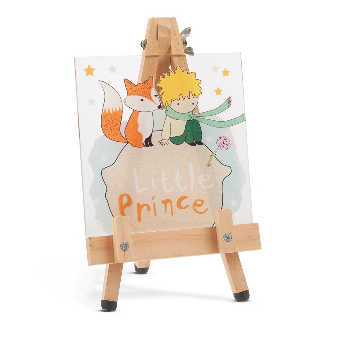 Ξύλινο καβαλέτο με print plexiglass παραλληλόγραμμο.Η παράσταση απεικονίζει σε διάφανο χρώμα την κλασσική φιγούρα του Μικρού Πρίγκιππα από το παραμύθι.