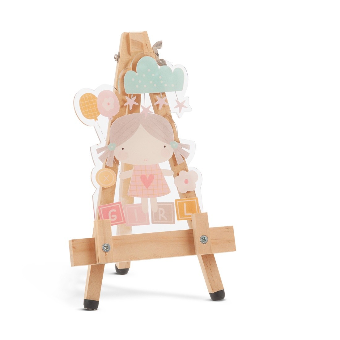 Ξύλινο καβαλέτο με print plexiglass κοπτικό.Η παράσταση απεικονίζει σε διάφανο χρώμα ένα κοριτσάκι σε ροζ girlish αποχρώσεις.