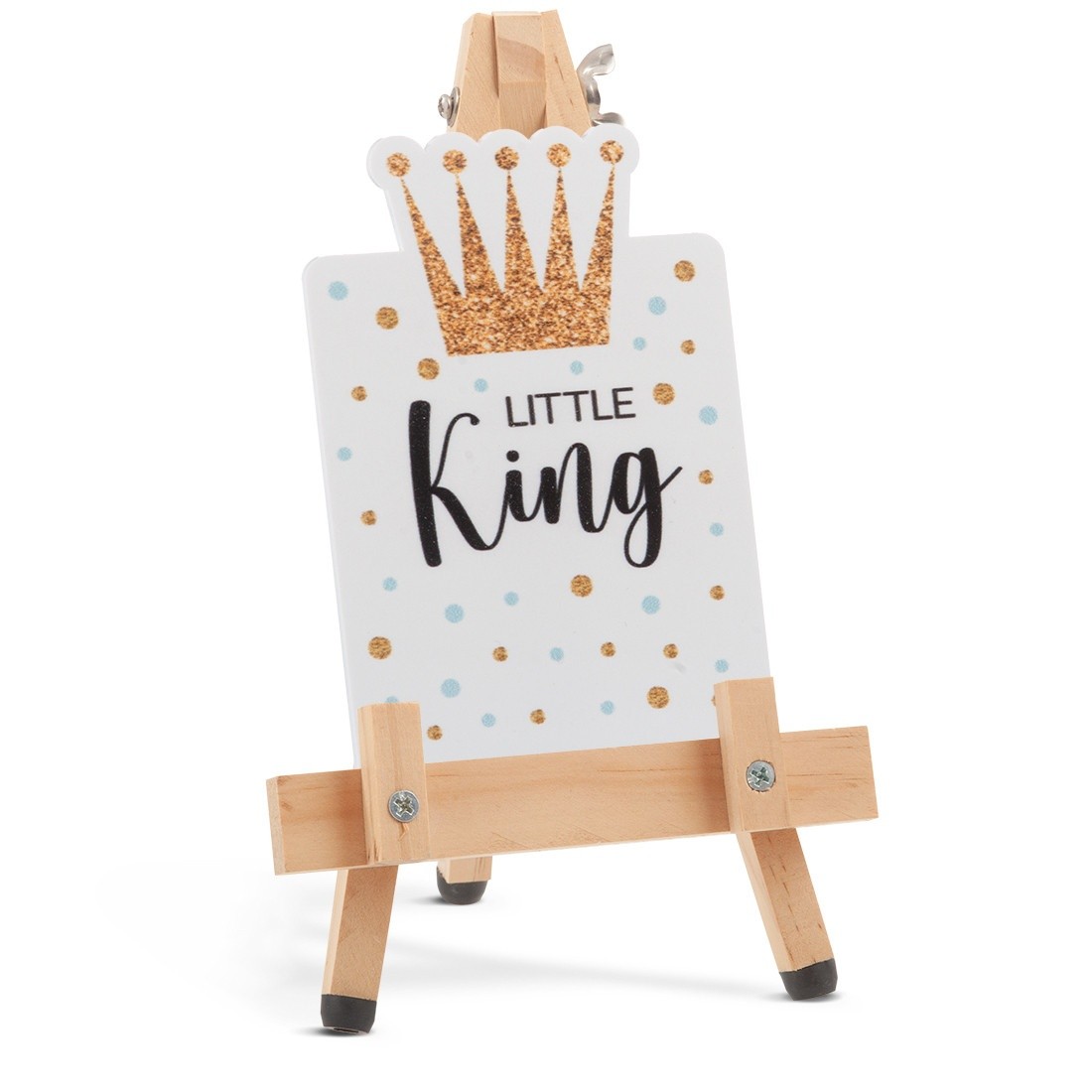 Ξύλινο καβαλέτο με print plexiglass κοπτικό.Η παράσταση απεικονίζει σε λευκό χρώμα την κορώνα του "Little King".