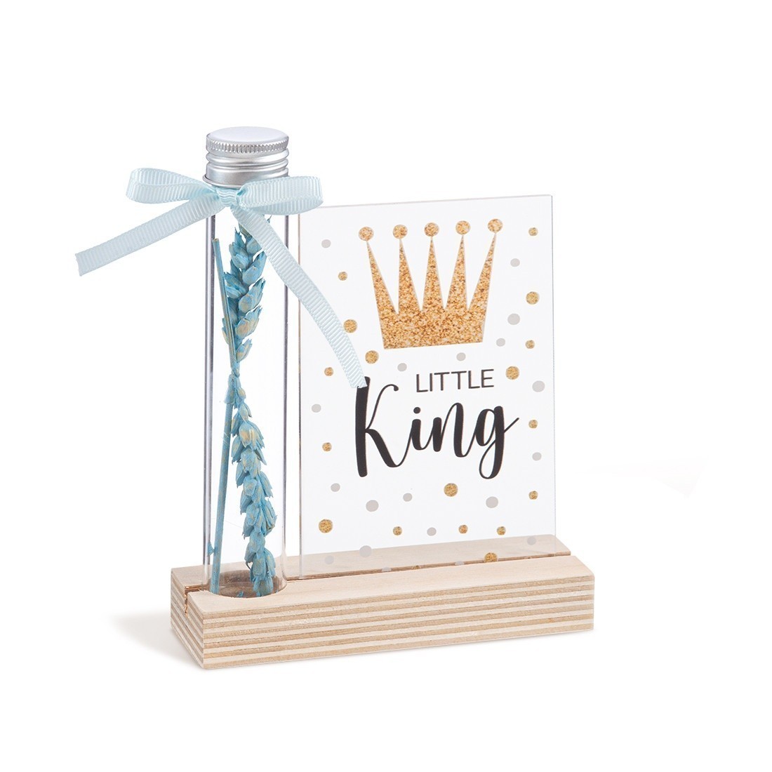 Ξύλινη βάση με print παραλληλόγραμμο καδράκι plexiglass σε λευκό χρώμα και γυάλινο δοκιμαστικό σωλήνα.Η παράσταση απεικονίζει την κορώνα του "Little King".