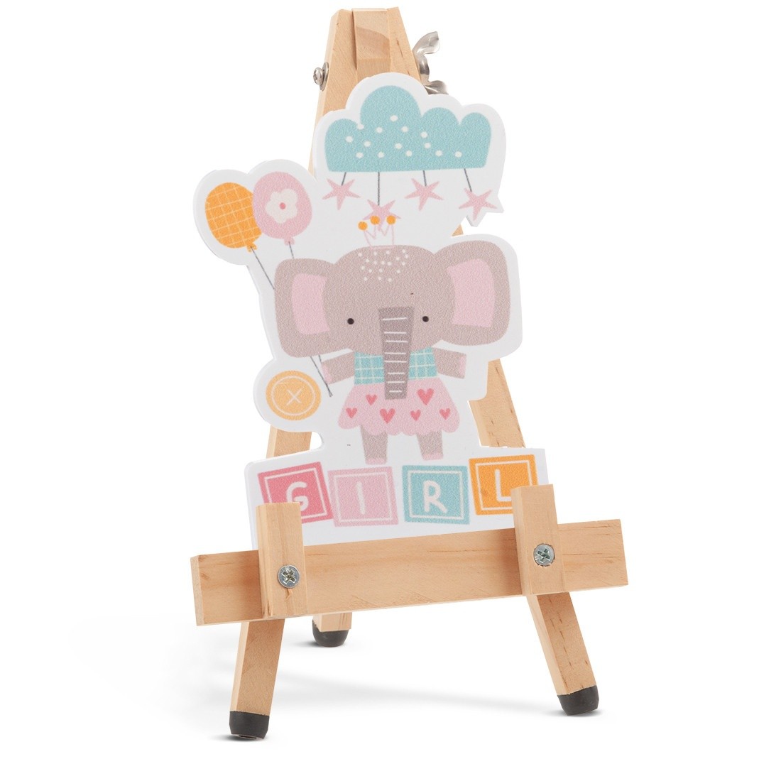 Ξύλινο καβαλέτο με print plexiglass κοπτικό.Η παράσταση απεικονίζει σε λευκό χρώμα την ελεφαντίνα σε ροζ αποχρώσεις.