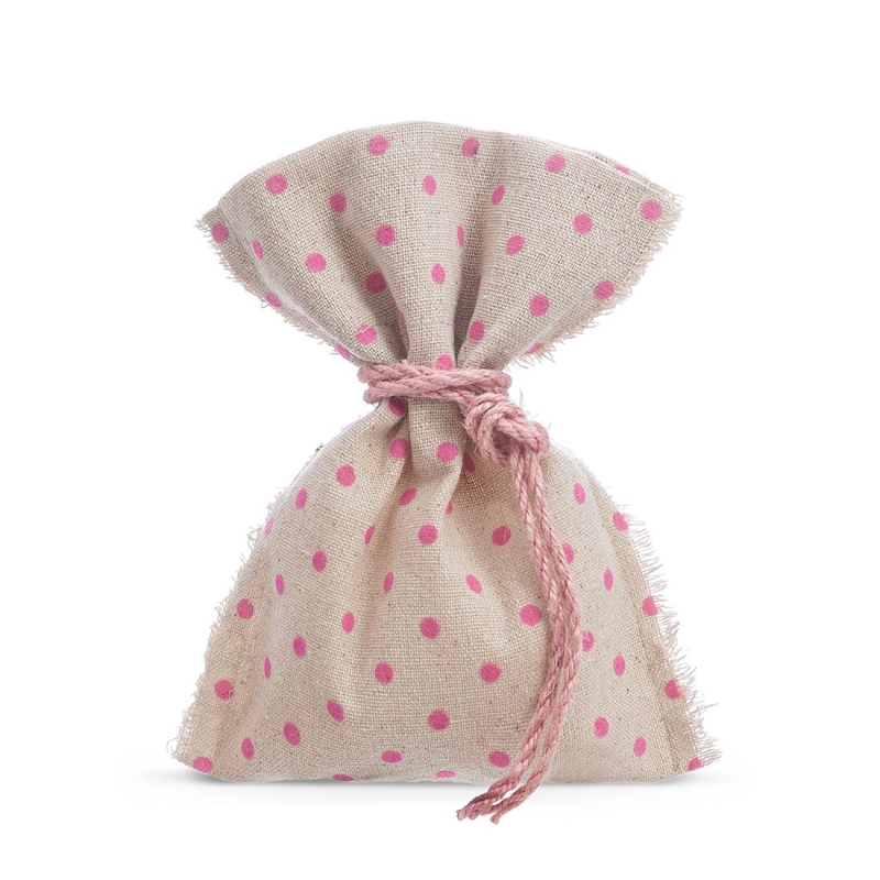 Πουγκί από λονέτα σε μπεζ απόχρωση & print πουά ροζ.