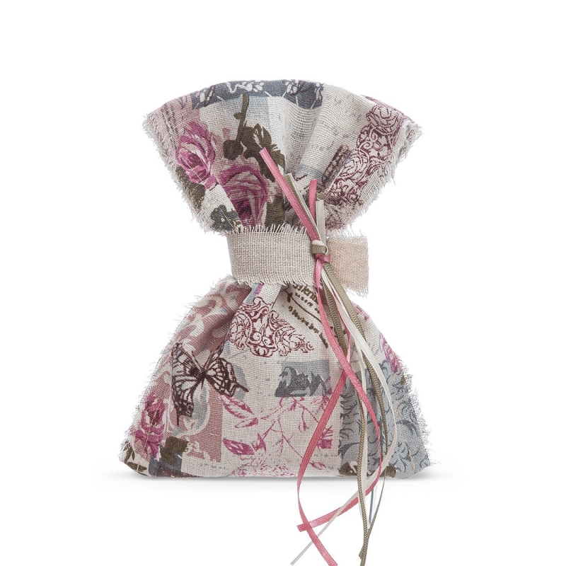 Πουγκί λινό σε μπεζ χρώμα με print λουλούδια σε vintage μοτίβο.