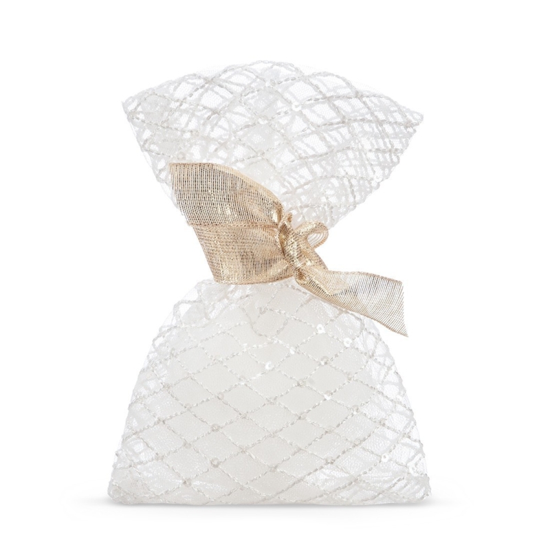 Πουγκί από τούλι βουάλ σε εκρού χρώμα με κέντημα & στρας.