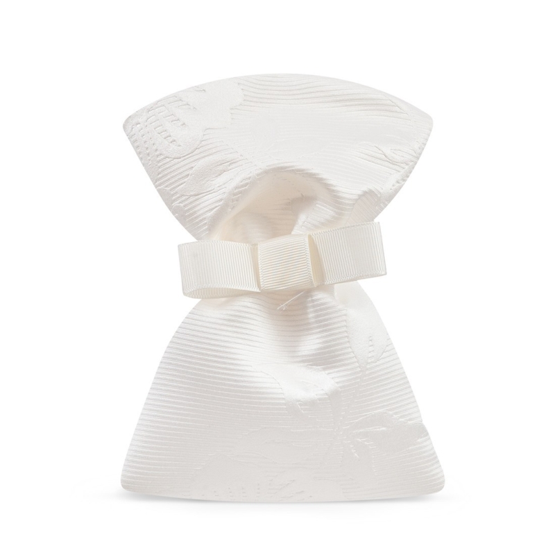 Πουγκί με ανάγλυφο μπροκάρ μοτίβο λουλουδιών σε εκρού χρώμα.