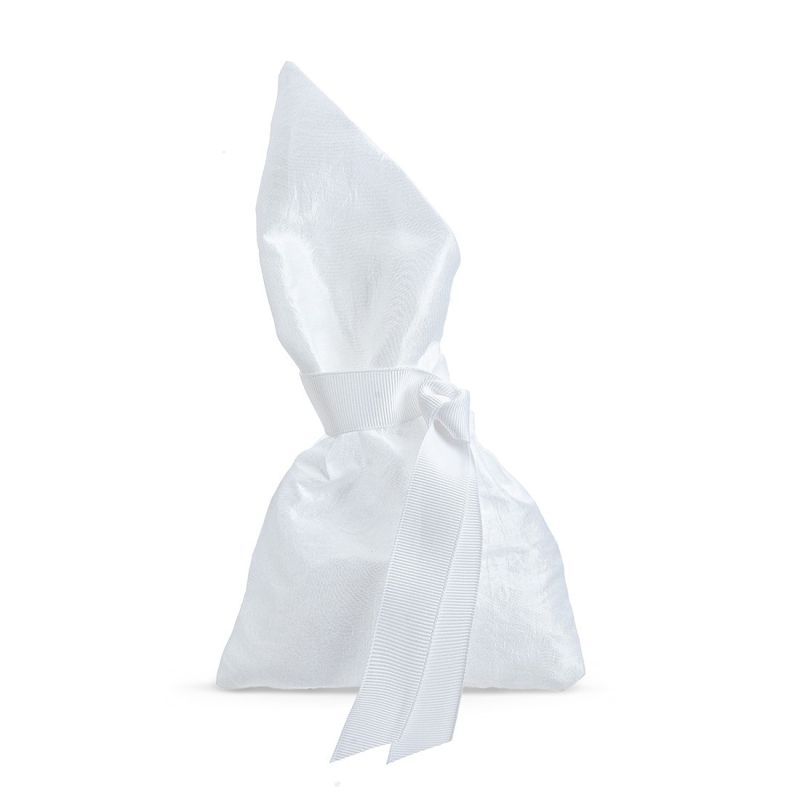 Πουγκί από ταφτά σε λευκό χρώμα με λοξό γάζωμα στο λαιμό.