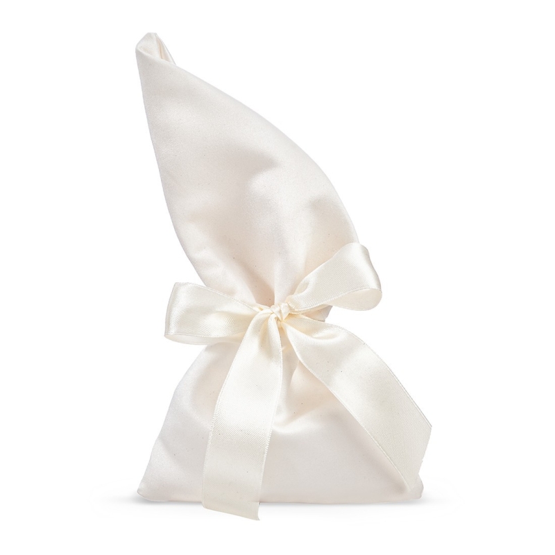 Πουγκί από σατέν ρασμίρ σε χρώμα dark εκρού & με λοξό γάζωμα στο λαιμό.
