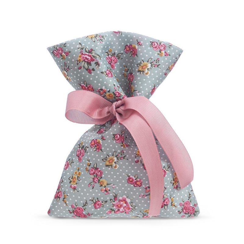 Βαμβακερό print εμπριμέ πουγκί σε λαδί χρώμα με λευκό πουά & πολύχρωμα λουλούδια.