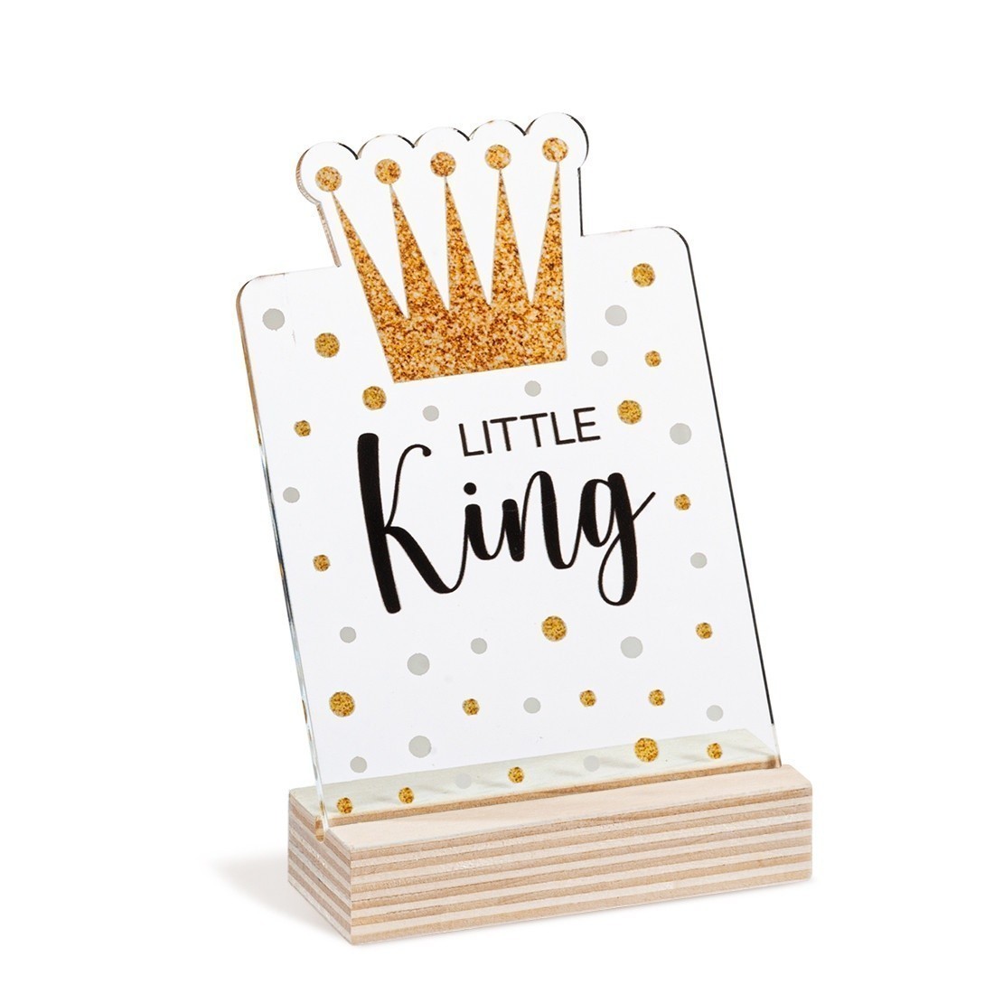 Ξύλινη βάση με print plexiglass κοπτικό. Η παράσταση απεικονίζει σε διάφανο χρώμα την κορώνα του "Little King".