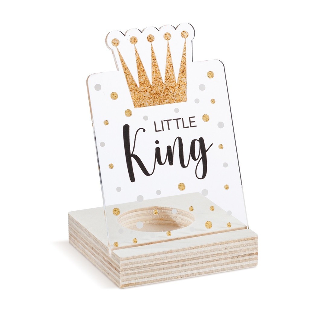 Ξύλινη βάση ρεσώ με print plexiglass κοπτικό. Η παράσταση απεικονίζει σε διάφανο χρώμα την κορώνα του "Little King".