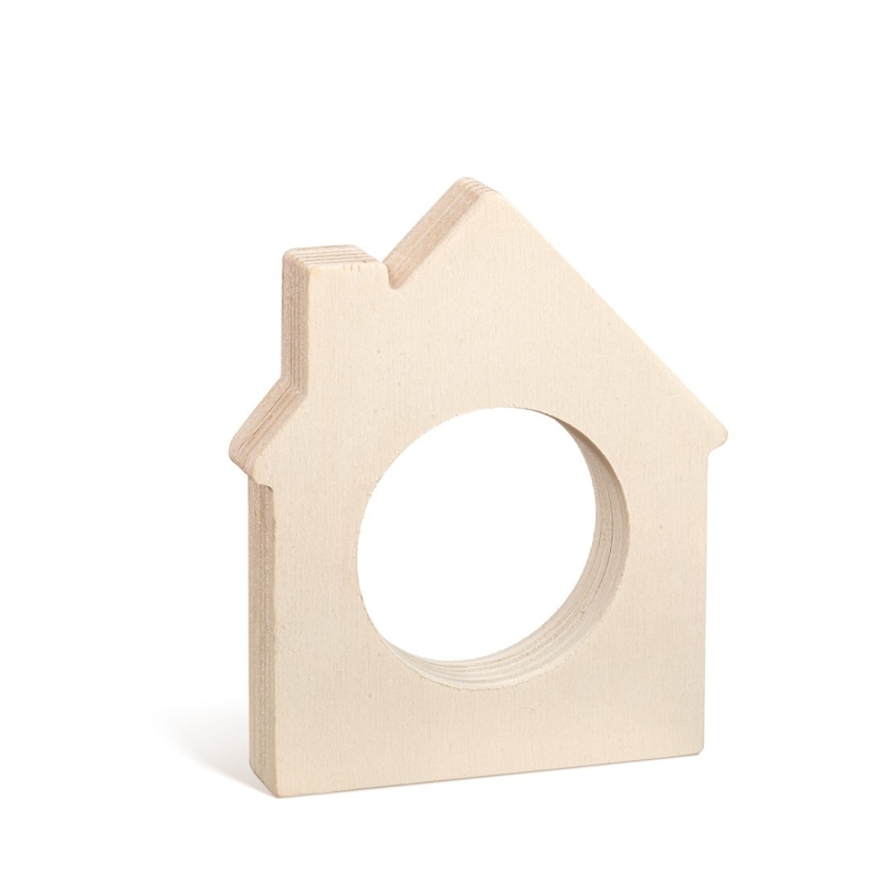 Ξύλινο διακοσμητικό σπιτάκι σε natural χρώμα. Στη μέση έχει στρογγυλή εγκοπή. Κατάλληλο για κατασκεύες.