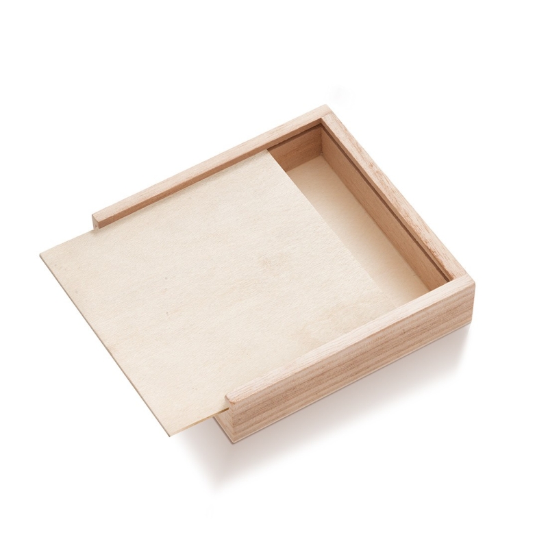 Ξύλινο τετράγωνο κουτάκι με συρταρωτό καπάκι σε natural χρώμα. Κατάλληλο για κατασκεύες.