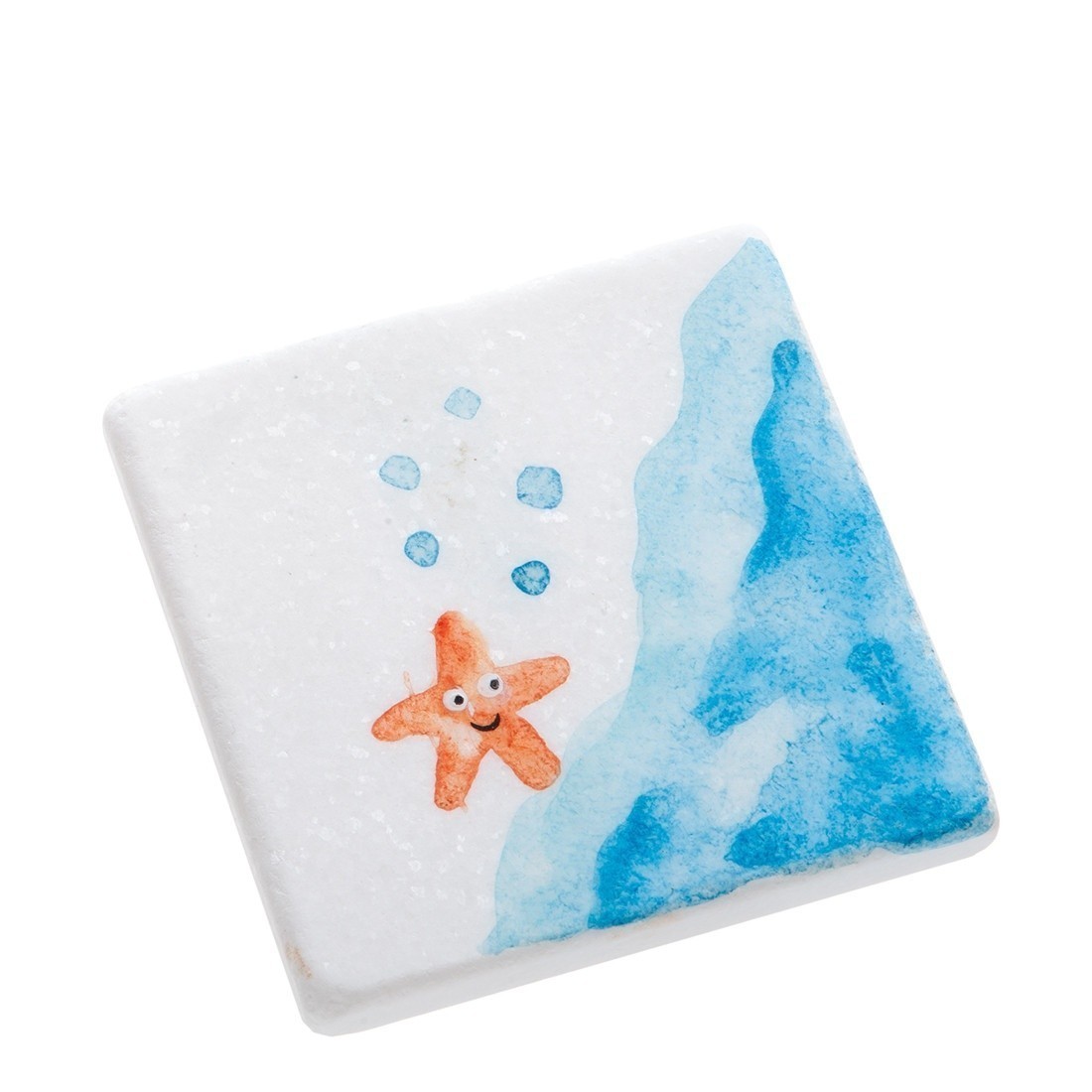 Επιτραπέζιο διακοσμητικό με βάση το μάρμαρο. Το μαρμαράκι είναι ζωγραφισμένο με έναν αστερία και σιελ αποχρώσεις.