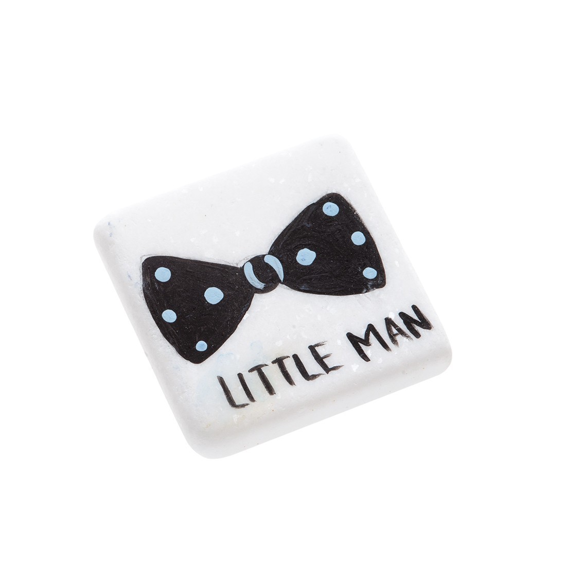 Επιτραπέζιο διακοσμητικό με βάση το μάρμαρο. Το μαρμαράκι είναι ζωγραφισμένο με παπιγιόν Little man.
