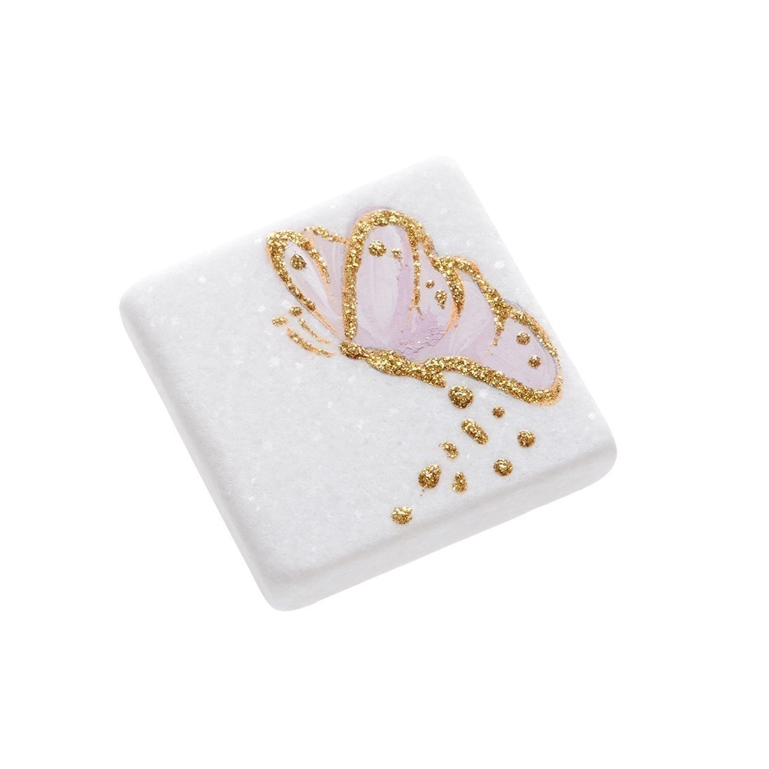 Επιτραπέζιο διακοσμητικό με βάση το μάρμαρο. Το μαρμαράκι είναι ζωγραφισμένο με πεταλούδα σε ροζ και χρυσό glitter .