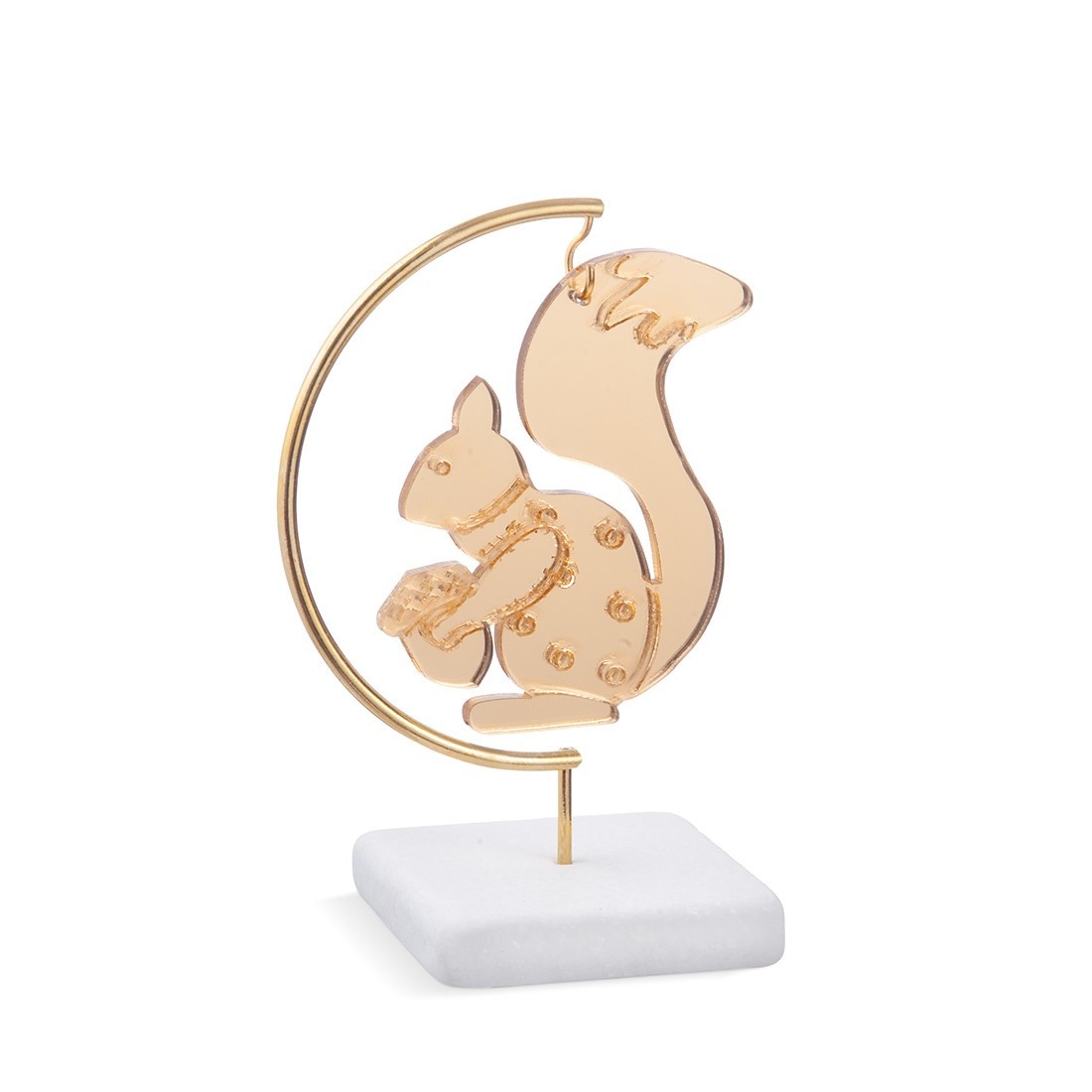Γύψινη βάση με μεταλλικό κρίκο μισοφέγγαρο και χρυσό σκιουράκι από καθρέφτη plexiglass.