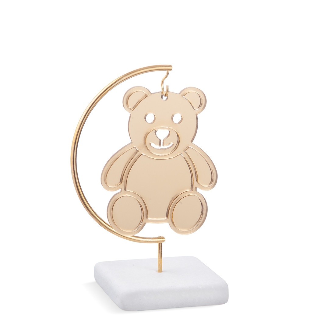 Γύψινη βάση με μεταλλικό κρίκο μισοφέγγαρο και χρυσό αρκουδάκι από καθρέφτη plexiglass.