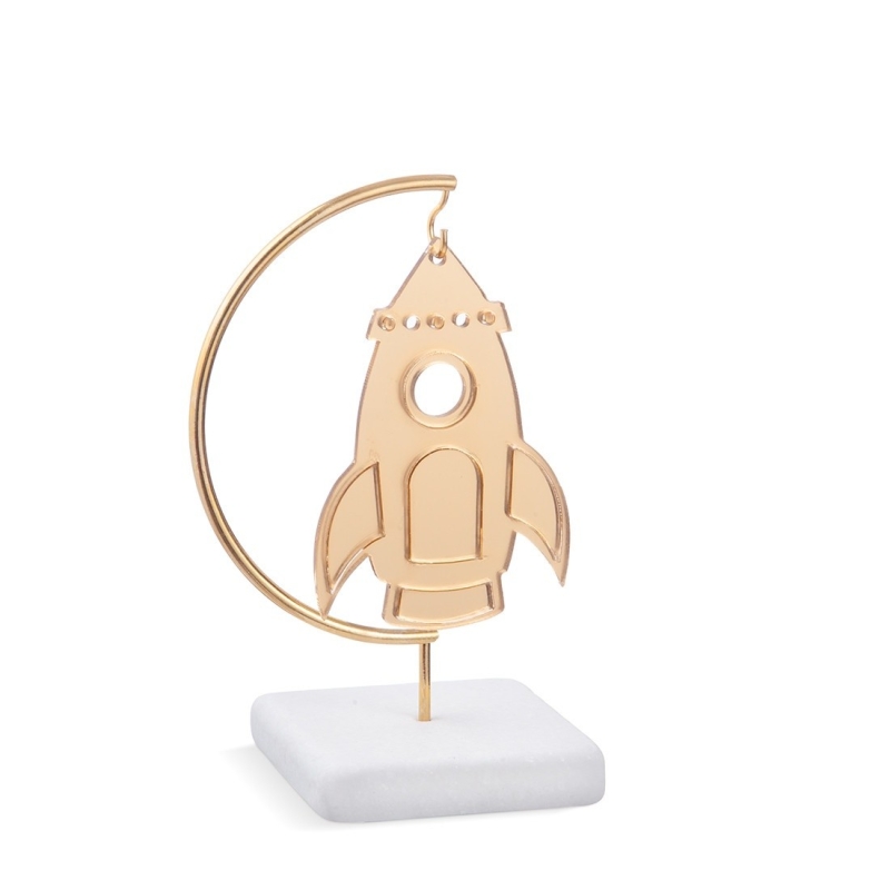 Γύψινη βάση με μεταλλικό κρίκο μισοφέγγαρο και χρυσό πύραυλο από καθρέφτη plexiglass.