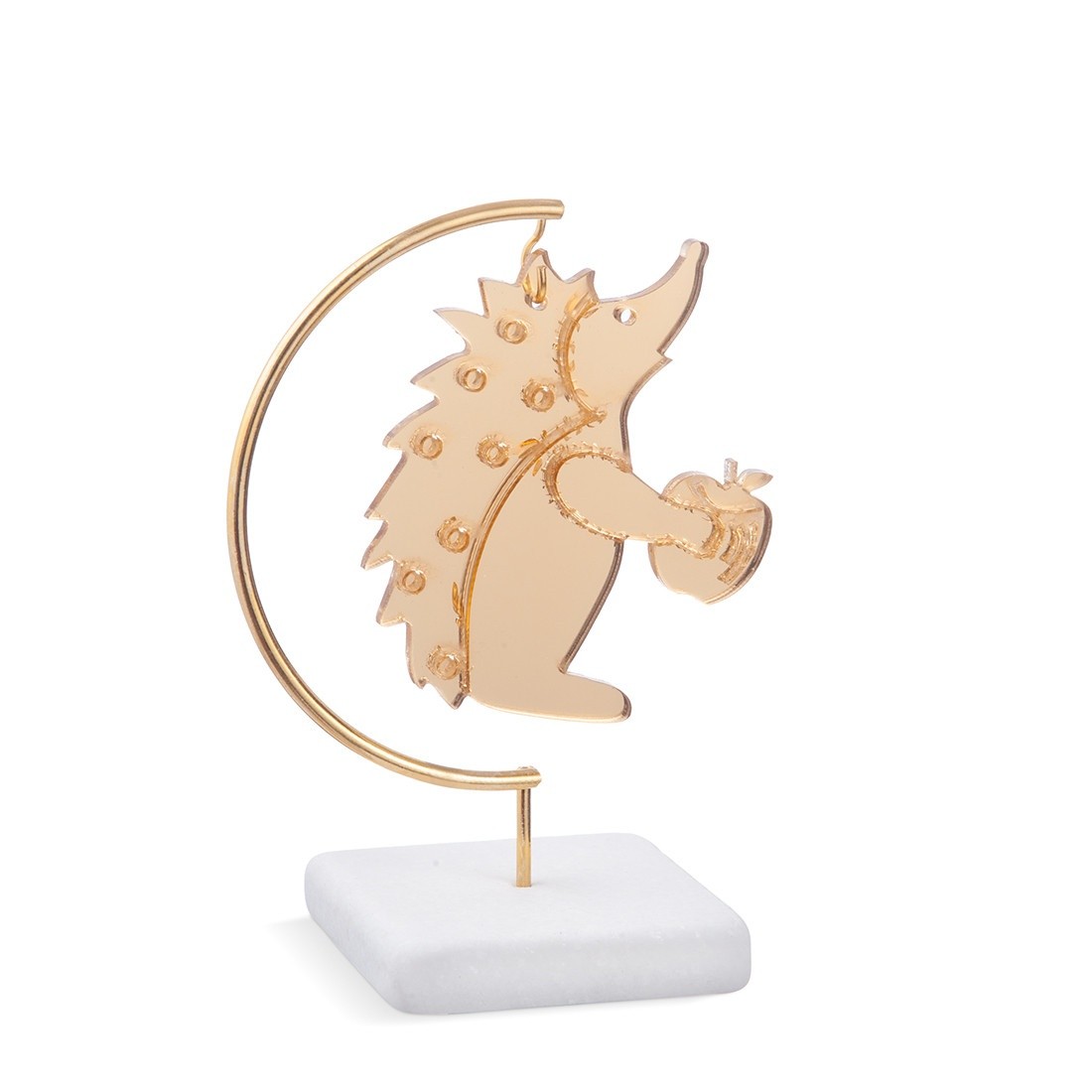 Γύψινη βάση με μεταλλικό κρίκο μισοφέγγαρο και χρυσό σκαντζόχοιρο από καθρέφτη plexiglass.