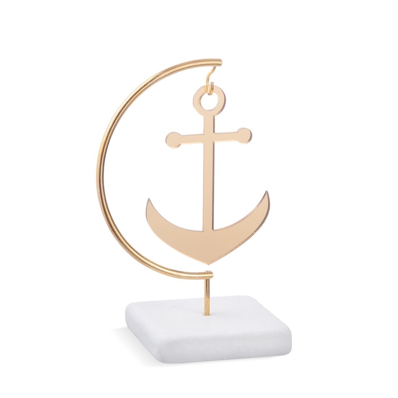 Γύψινη βάση με μεταλλικό κρίκο μισοφέγγαρο και χρυσή άγκυρα από καθρέφτη plexiglass.