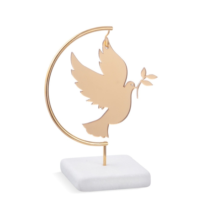Γύψινη βάση με μεταλλικό κρίκο μισοφέγγαρο και χρυσό περιστέρι από καθρέφτη plexiglass.
