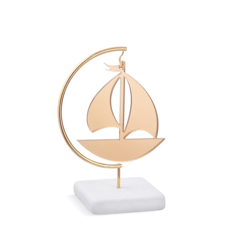 Γύψινη βάση με μεταλλικό κρίκο μισοφέγγαρο και χρυσό καραβάκι από καθρέφτη plexiglass.