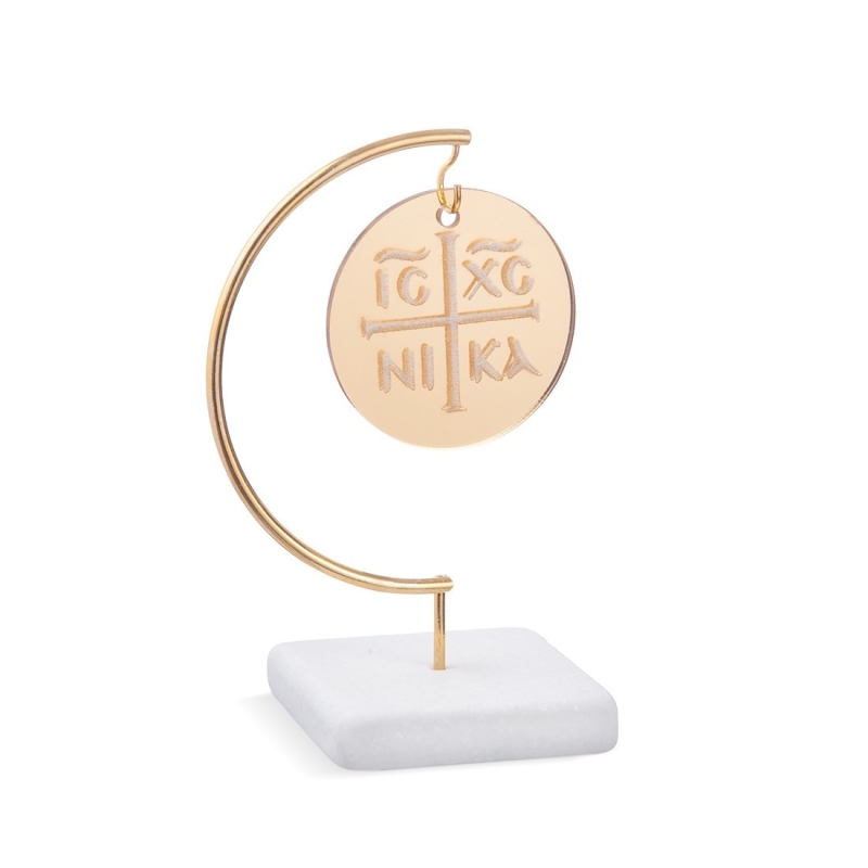 Γύψινη βάση με μεταλλικό κρίκο μισοφέγγαρο και χρυσό κωνσταντινάτο από καθρέφτη plexiglass.