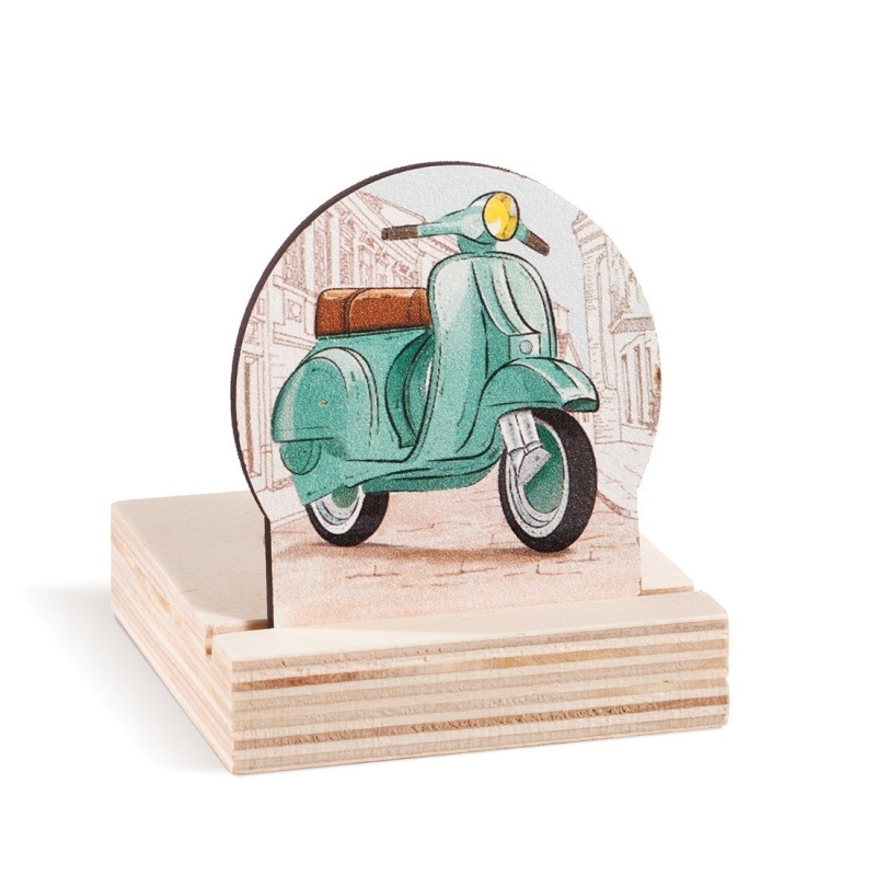 Ξύλινη βάση ρεσώ με κοπτικό.Η παράσταση απεικονίζει μια βεραμάν βέσπα.